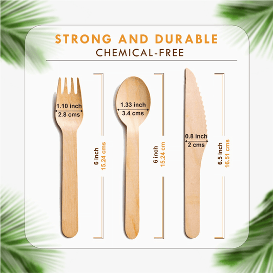 Raj Disposable Cutlery like Bamboo - Strong and Reusable Party 100 Forks - Decorative Compostable Tableware for Lunch, Dinner, Birthday, Camping, Outdoor BBQ, Picnic Parties