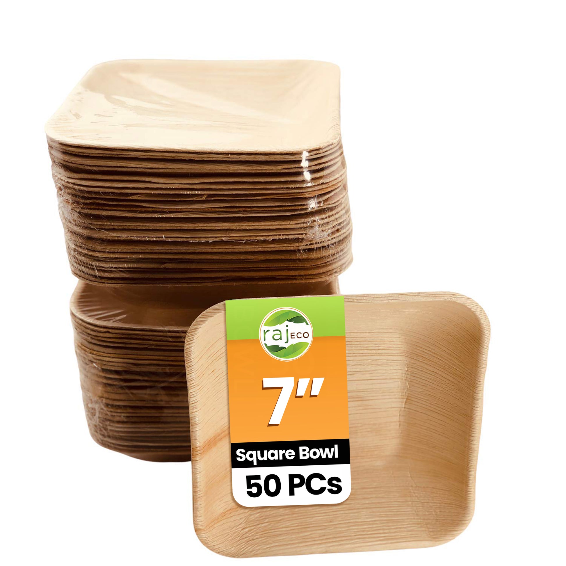 Raj Palm Leaf Plates, [50-Pack] 7" Square Bowls like Bamboo plates Disposable, Strong, Decorative Compostable Tableware for wedding, Lunch, Dinner, Birthday, Camping, Outdoor BBQ, Picnic