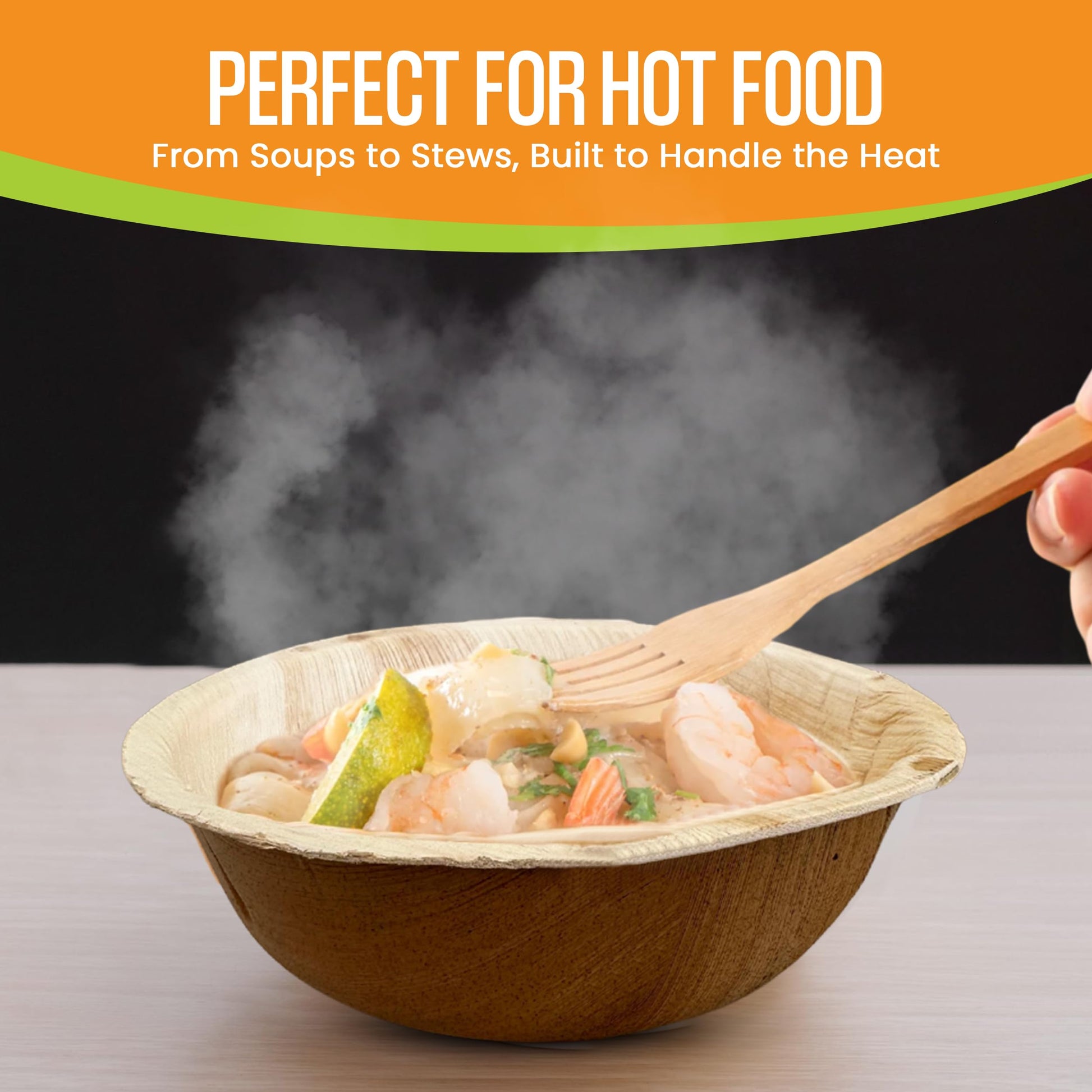 Raj Disposable Palm Leaf Bowls (50 Count, 6" Bowls) Strong Bowl Like Bamboo Party Bowl - Decorative Compostable Tableware for Lunch, Dinner, Birthday, Outdoor, BBQ, Picnic, Parties