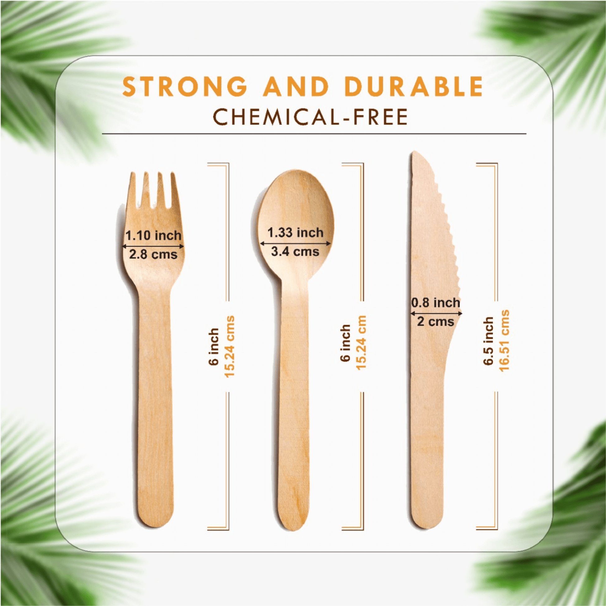 MULTIPLY BENEFITS - These cutlery can be used for house parties, social events, weddings, festivals, takeout food, craftwork, or simply when you don't want to wash too many utensils...Our wooden cutlery set will takes care of you!
